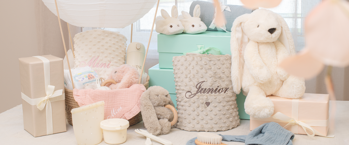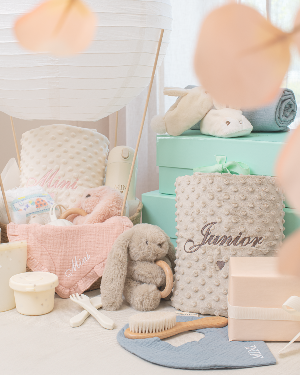 Tervetuloa valikoimaamme, jossa tarjoamme henkilökohtaisia babyshower-lahjoja, niin tytölle kuin pojallekin, sekä ylellisiä babyshower-lahjoja ja tyylikkäitä babyshower-lahjalaatikoita. Autamme sinua löytämään tavan juhlistaa tätä erityistä odotusaikaa. Henkilökohtaiset lahjamme vauvakutsuihin antavat sinun luoda jotain todella erityistä ja maagista. Valitse laajasta tuotevalikoimastamme pehmeistä peitoista lumoaviin, persoonallisiin leluihin.