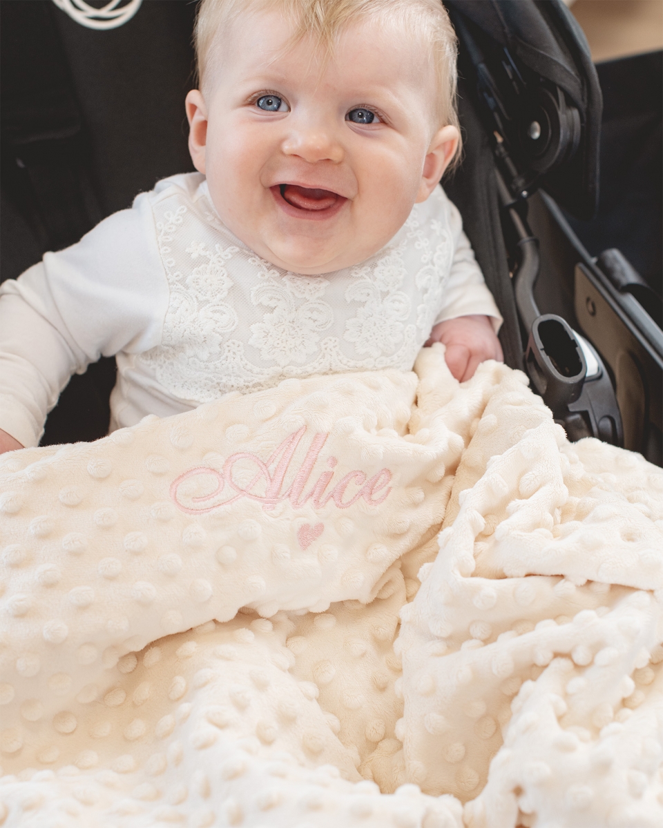 Tämä persoonallinen setti on kuin lämmin halaus sekä äidille että vauvalle. Lahjapakkauksessa on nimikoitu pehmeä valkoinen aamutakki ja pehmeät tossut, jotka lämmittävät äitiä ja tuntuvat mukavilta pitkien päivien ja iltojen jälkeen. Pienokaiselle pakkauksessa on kermanvärinen peitto, johon on kirjailtu rakastetun lapsen lempinimi, ja pupunmuotoiset suloiset vauvan tossut, jotka pitävät pienet jalat lämpiminä rakkaudella ja ajatuksella.
