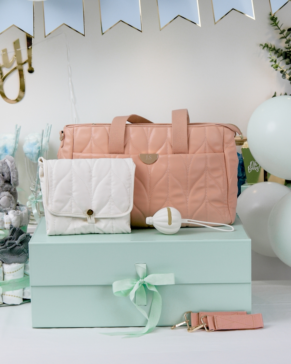 Uskomattoman söpö roosanvärinen setti, josta tulee rakkaudentäyteinen ja käytännöllinen lahja tuleville vanhemmille. Setti sisältää tyylikkään roosanvärisen hoitolaukun, johon kaiverretaan lapsen nimi tai lempinimi, pehmeän hoitoalustan, silikonisen tuttipidikkeen ja kaksi näppärää lastenvaunukoukkua – kaikki tuotteet on suunniteltu arjen helpottamiseen.