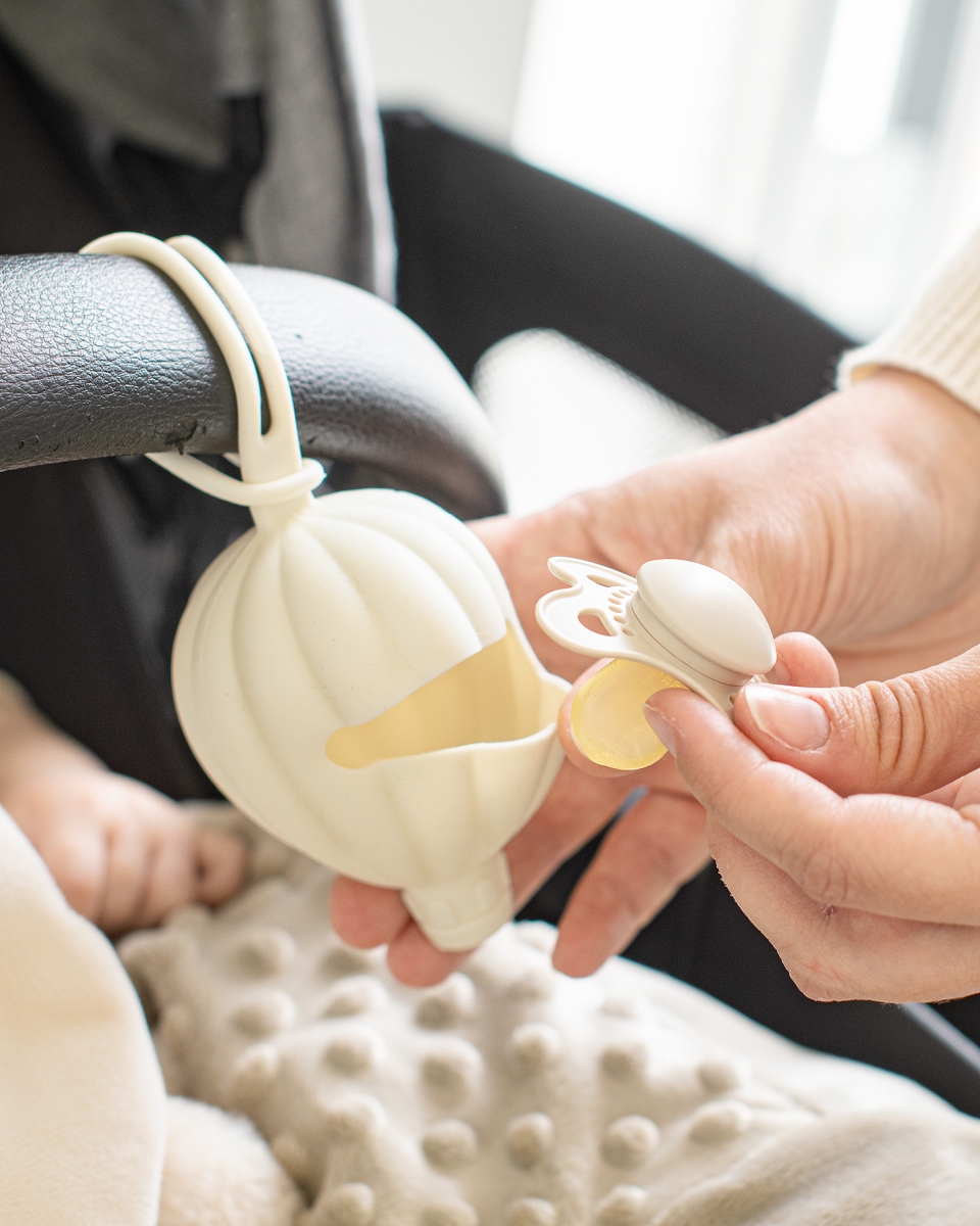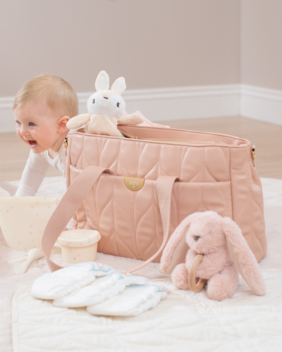 Näppärä hoitoalusta on mukava missä tahansa tapahtuvaa vaipanvaihtoa ajatellen, ja laukku on helppo kiinnittää lastenvaunuihin vaunukoukkujen avulla. Tuttipidike on pehmeä, joustava ja täydellinen kiinnitettäväksi hoitolaukkuun tai lastenvaunuihin.