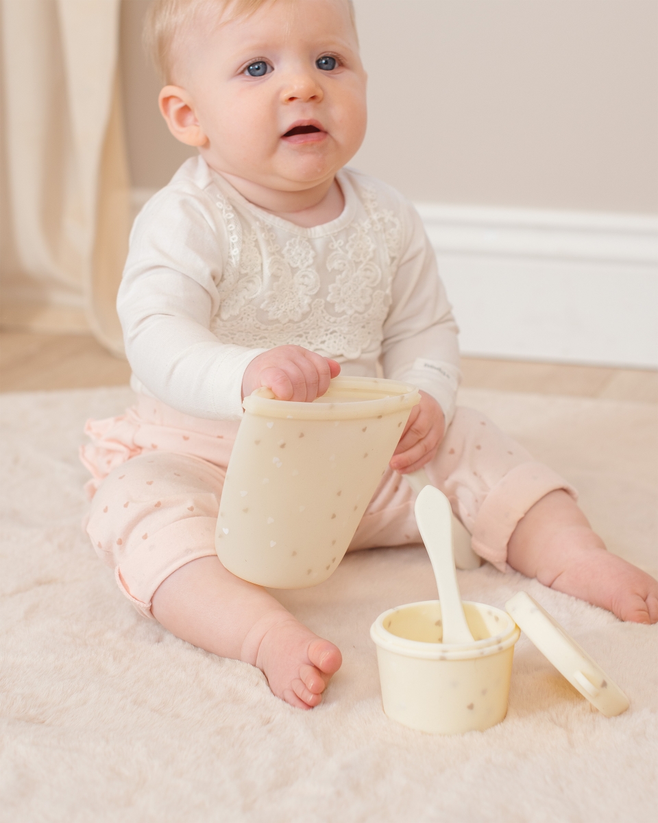 Monien kätevien ominaisuuksiensa ansiosta silikoni on erinomainen materiaalivalinta lastentuotteille. Silikoni on sekä kulutusta kestävää että joustavaa, joten se ei kärsi päivittäisessä käytössä. Koska silikoni ei sisällä BPA:ta eikä muita haitallisia aineita, se on turvallinen vaihtoehto kaikenikäisille lapsille. Se kestää korkeita ja matalia lämpötiloja, joten tuotteita on helppo käyttää astianpesukoneessa, mikroaaltouunissa ja pakastimessa. Lisäksi silikoni on helppo puhdistaa, se ei ime itseensä makuja eikä hajuja ja pysyy raikkaana pitkään – täydellinen valinta lapsiperheen hektiseen arkeen.