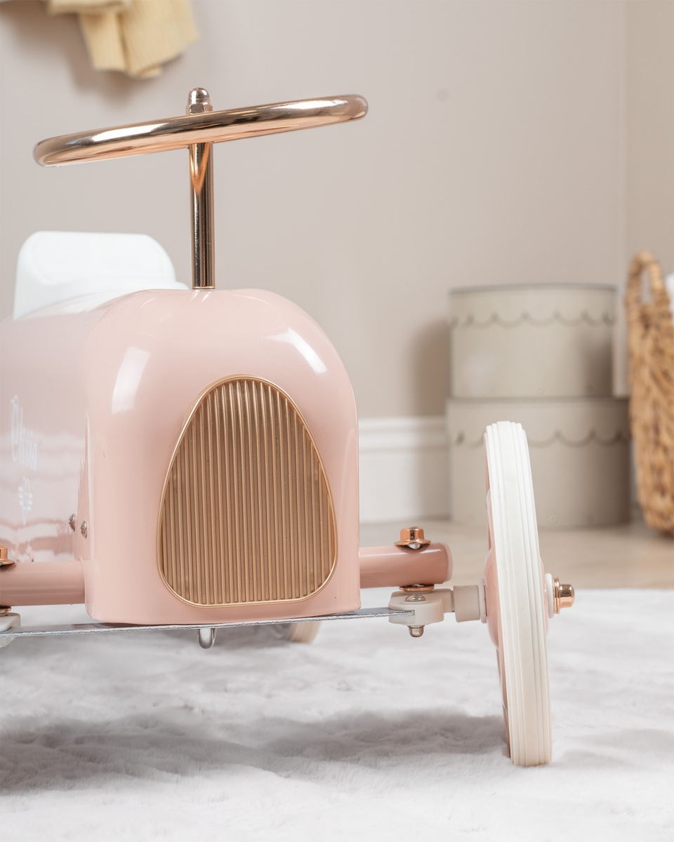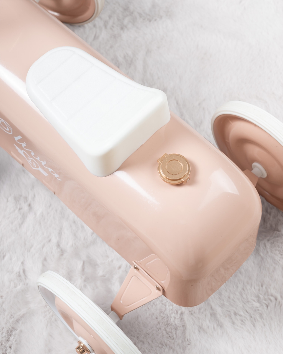 Tukeva, pienikokoinen retromallinen potkuauto.