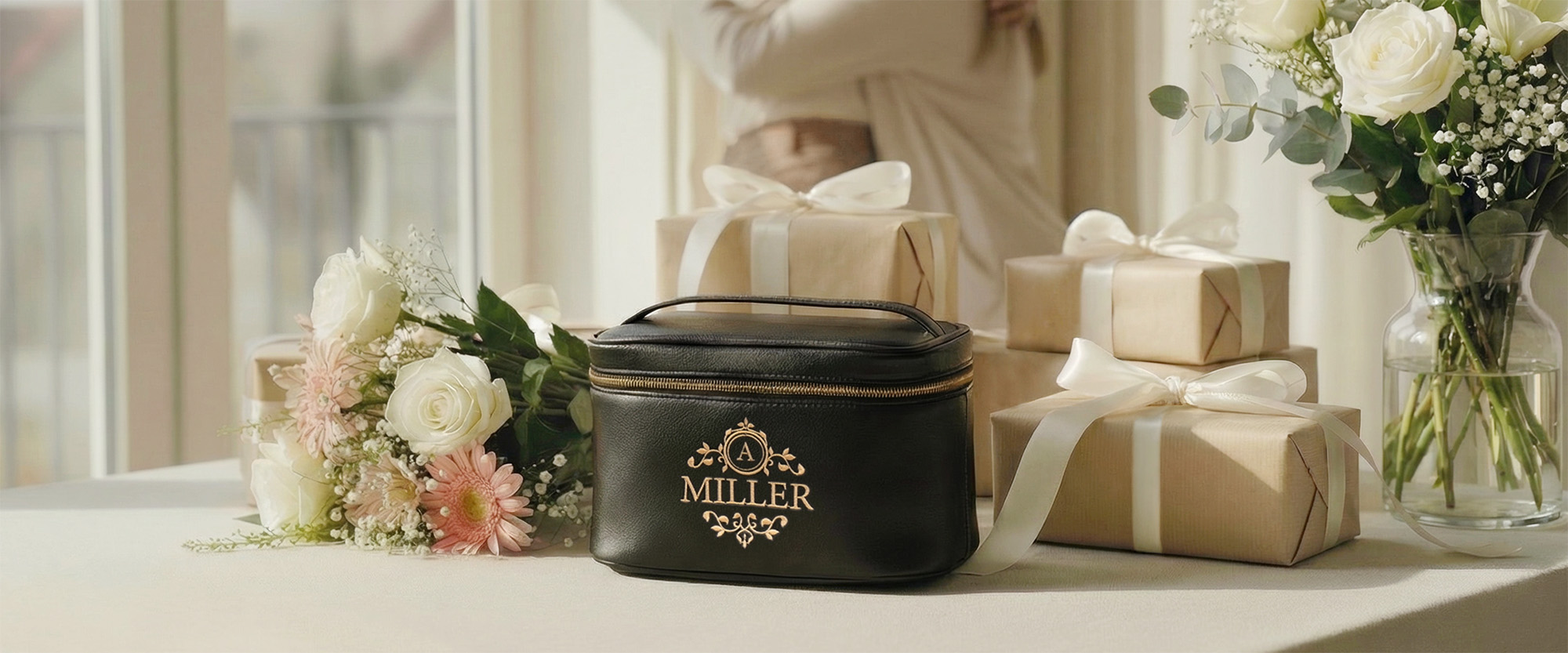 Meikkisivellinsetti ja meikkilaukku