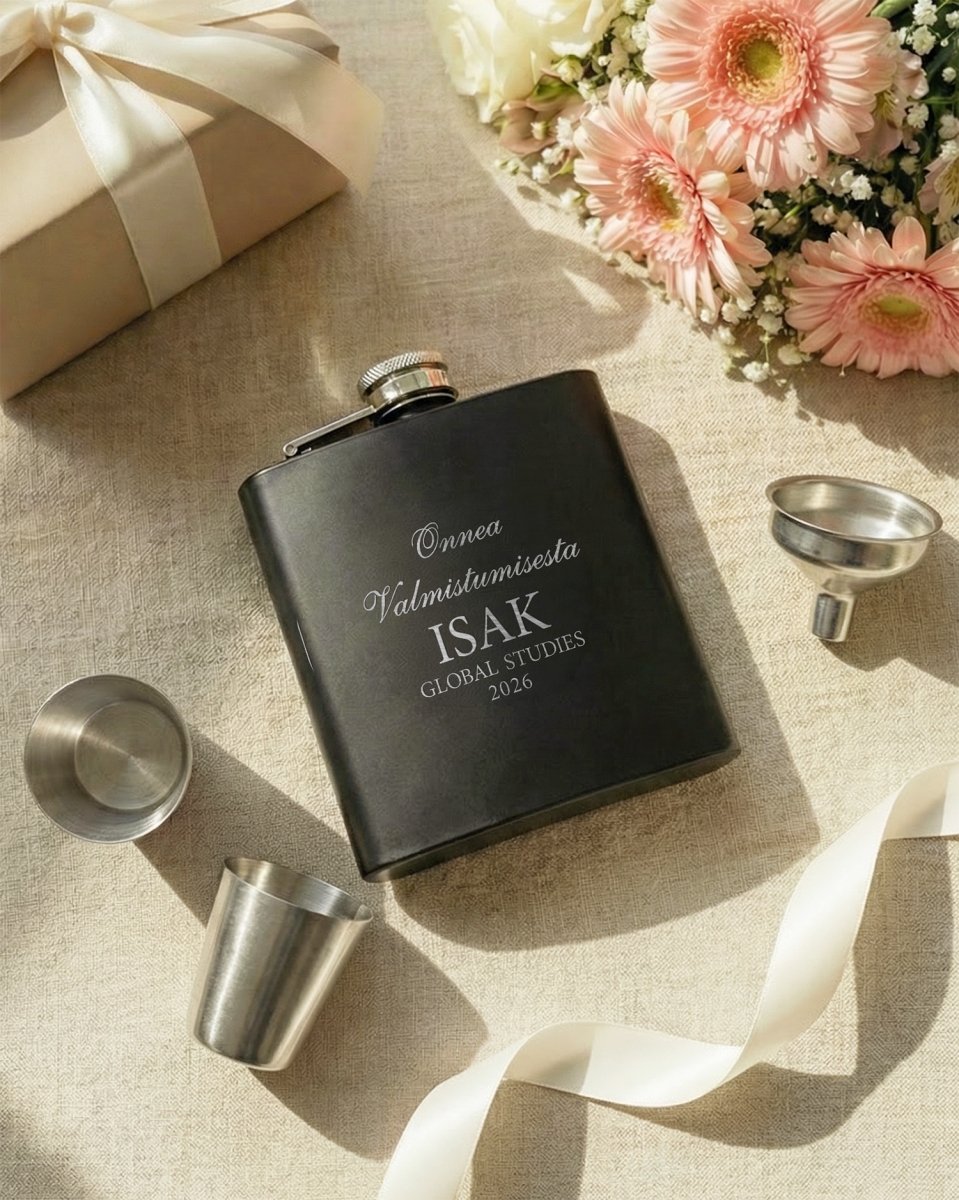 Juhli valmistumista henkilökohtaisella ja yllätyksellisellä lahjalla - tyylikkäällä kaiverretulla taskumatilla, josta säilyy pitkäaikainen muisto. Täydellinen valmistumislahja niille, jotka haluavat juhlistaa saavutustaan jollain käytännöllisellä ja henkilökohtaisella lahjalla.