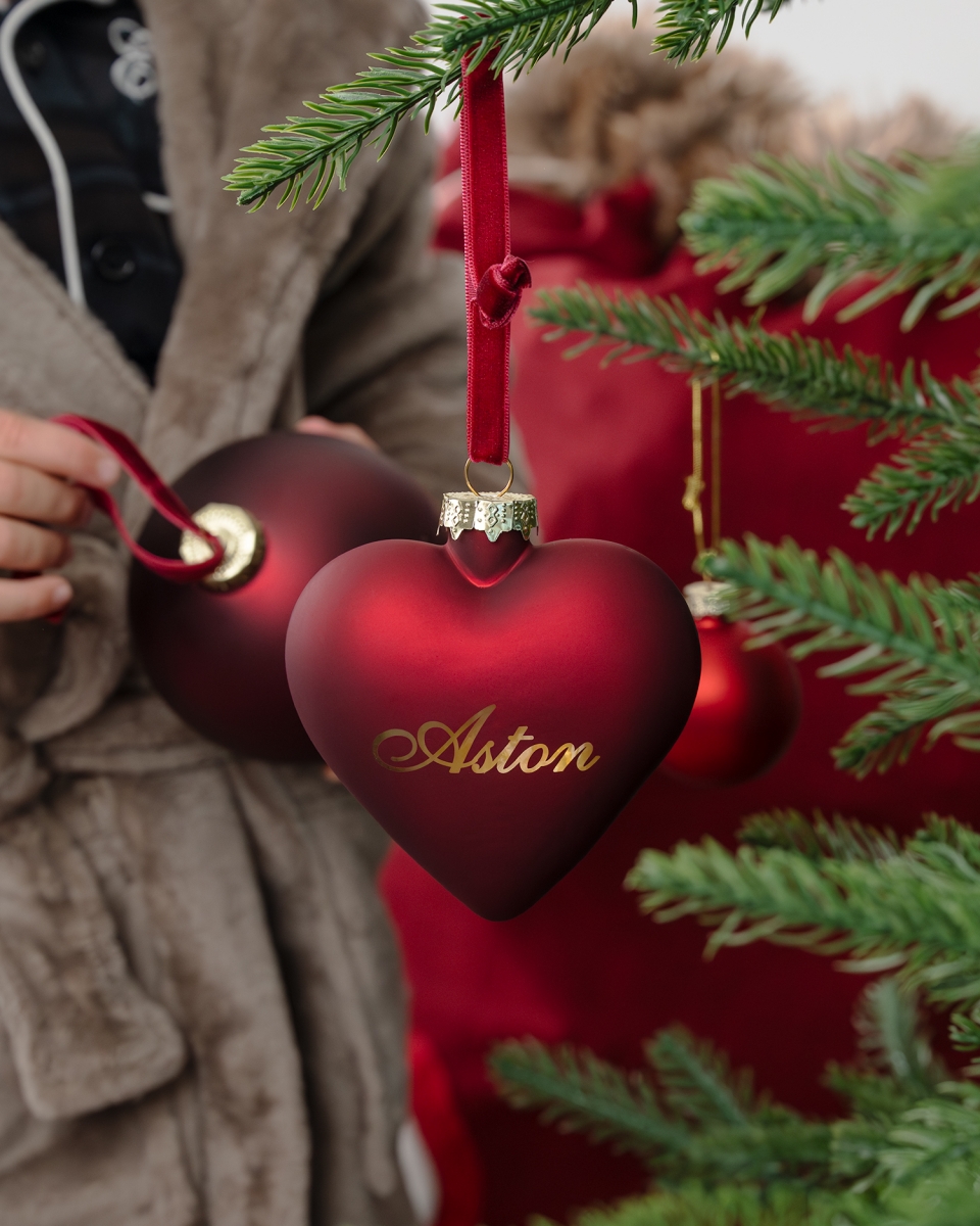 Tämä tunnelmallinen joulupallo yksilöllisellä kaiverruksella tarjoaa monia ikimuistoisia hetkiä joulun aikaan. Sydämenmuotoisessa joulupallossa on syvän tummanpunainen väri, joka hehkuu lämpöä ja rakkautta.