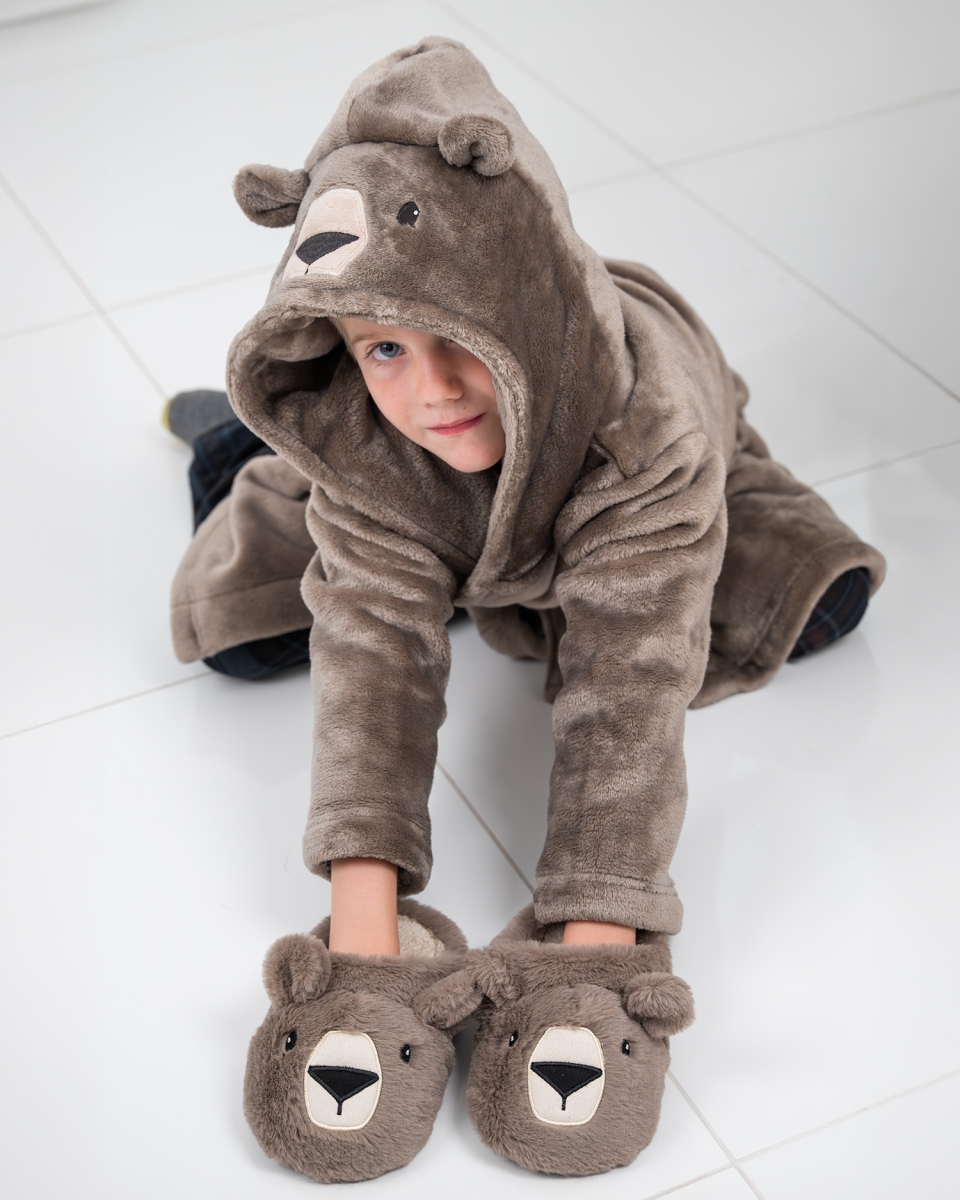 Lasten nimikoitu aamutakki, ruskea – Nalle