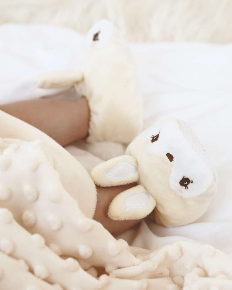 €56Pehmolelu, pehmoeläin pururenkaalla & vauvan viltti, hiekka