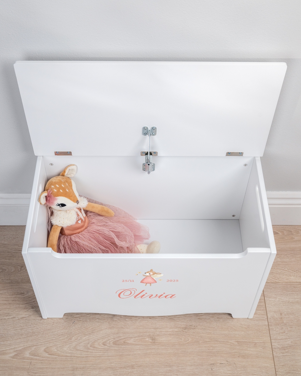 Tämä säilytysarkku ei ole ainoastaan käytännöllinen kaluste, vaan myös kaunis muisto moniksi vuosiksi eteenpäin. Täydellinen kastelahjaksi, syntymäpäivälahjaksi tai luomaan kutsuvaa ja turvallista ilmapiiriä, josta lapsen seikkailut voivat alkaa.