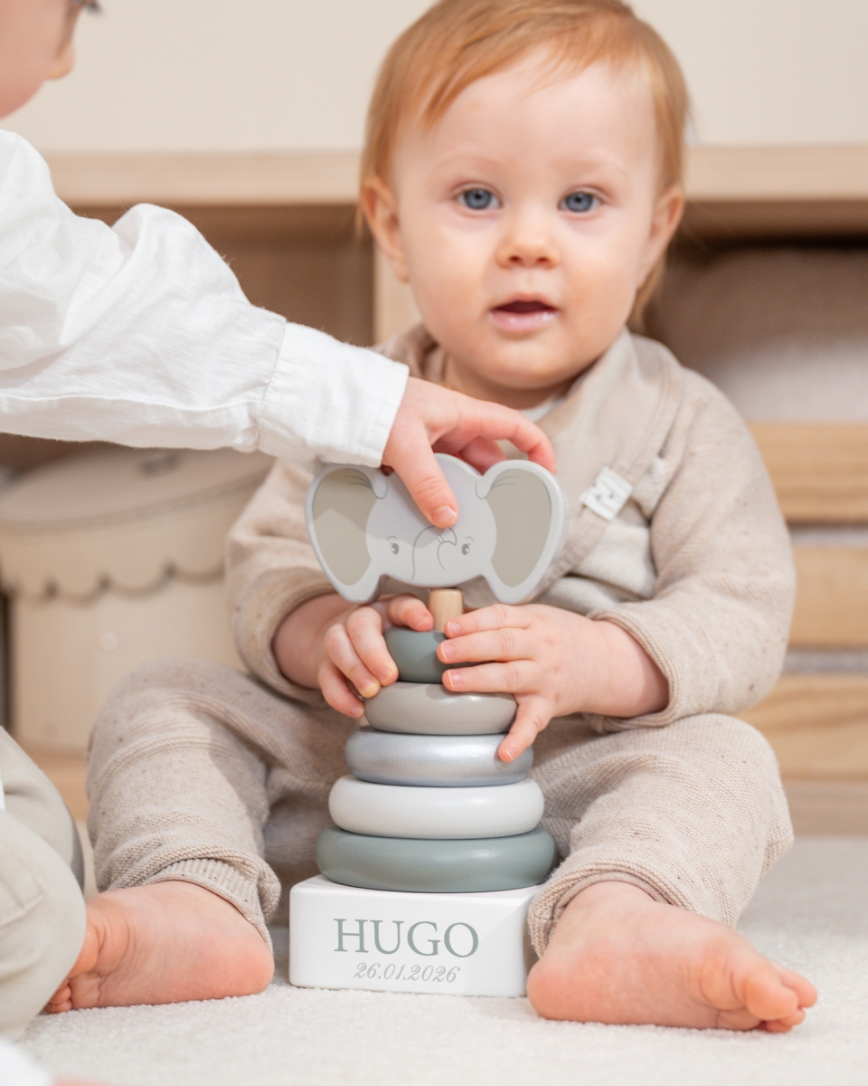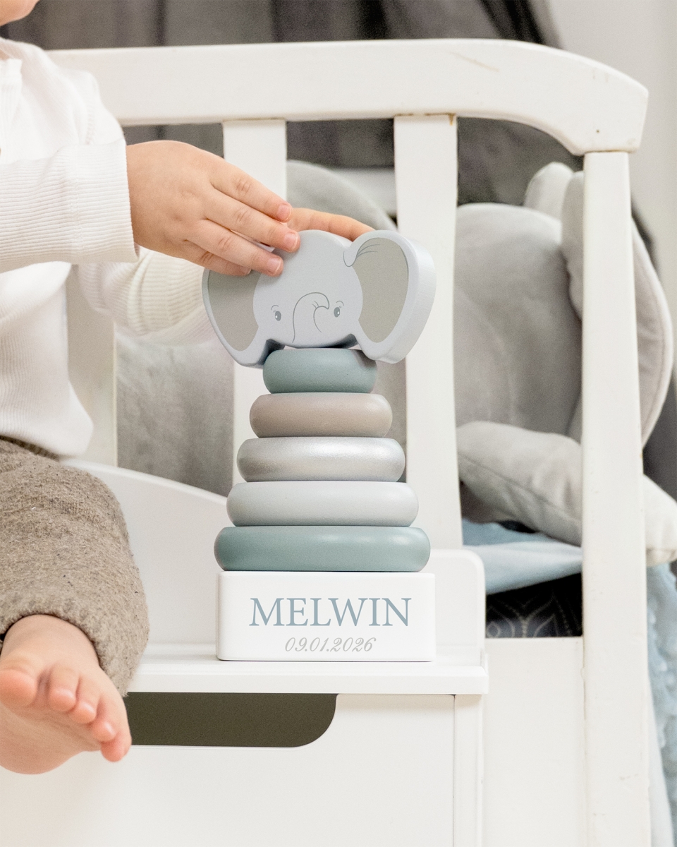 €39 Puupalikat kuvalla ja nimellä – elefantti