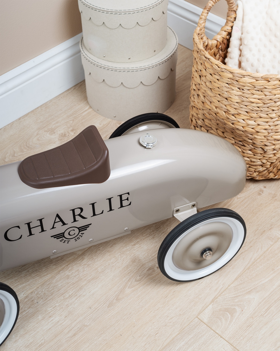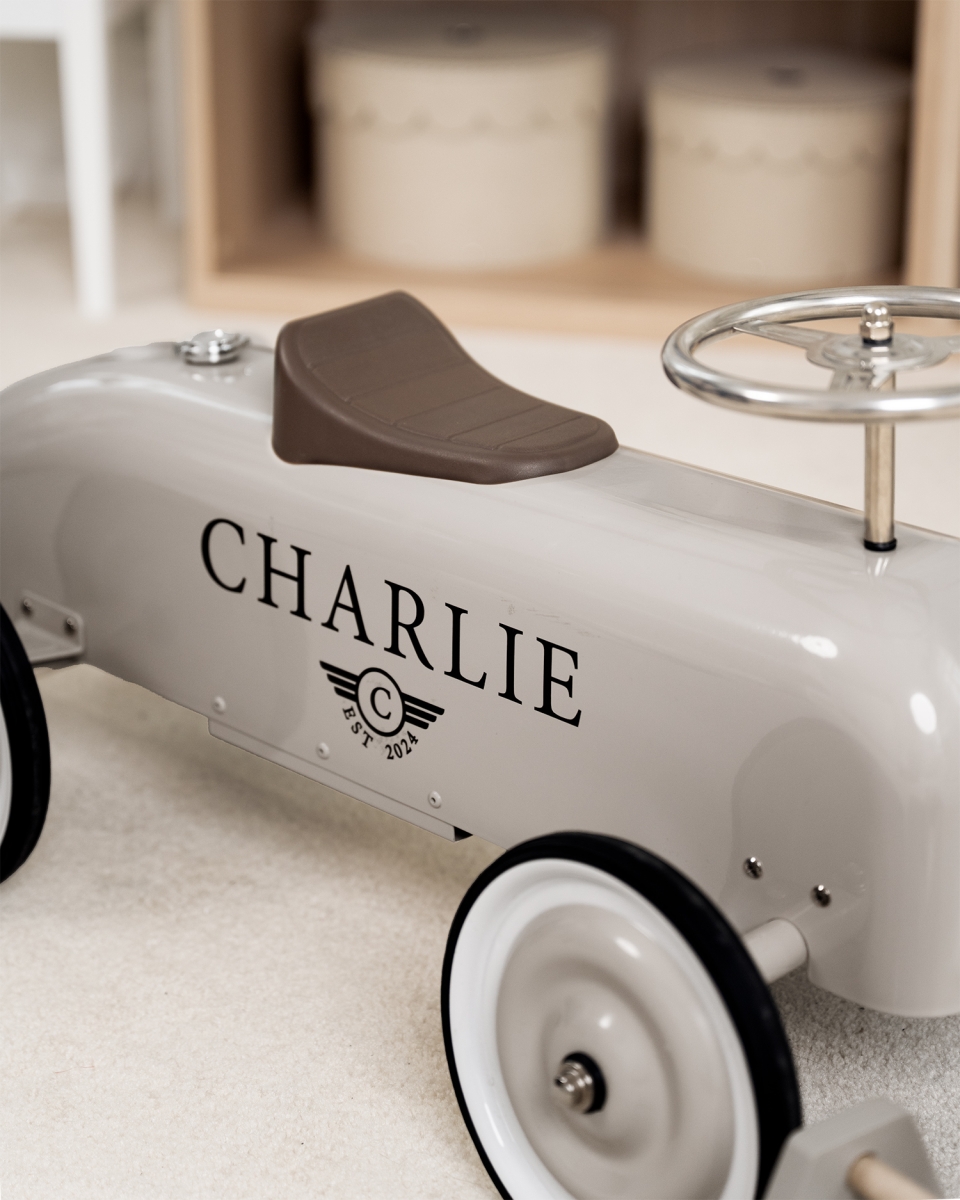 Auton molemmille puolille lisätään tulevan kilpa-ajajan oma nimi.