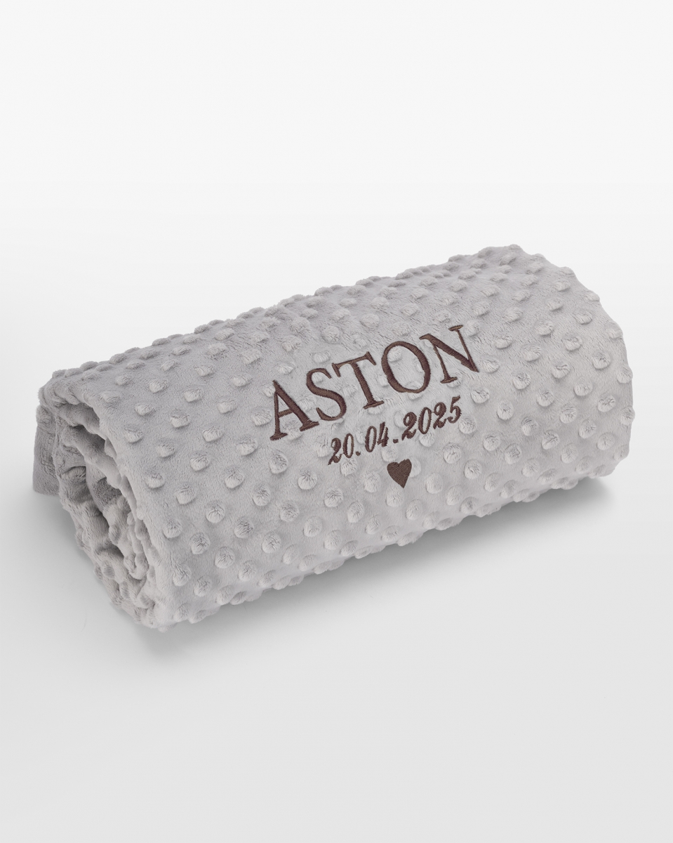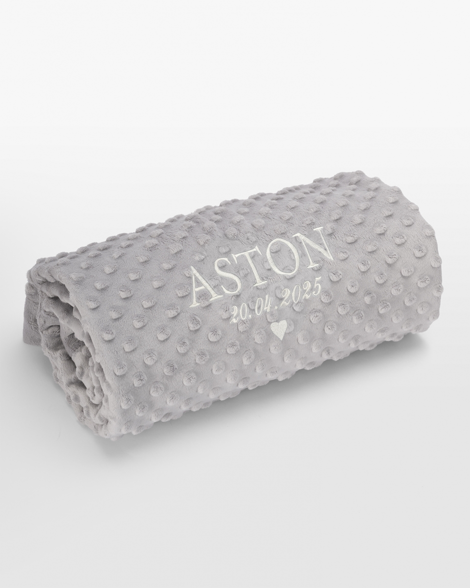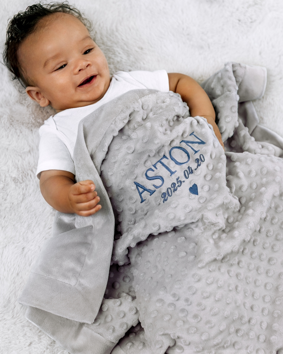 Tästä ajattomasta ja yksilöllisellä brodeerauksella varustetusta vauvan viltistä tulee rakas kaveri, joka säilyttää muistot elämän aivan ensimmäisistä hetkistä.
