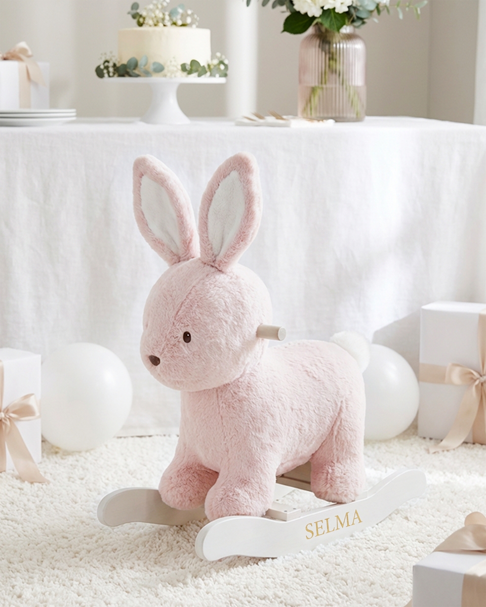 Tästä hauskasta, yksilöllisellä kaiverruksella varustetusta keinueläimestä tulee takuuvarma suosikki pienimpien parissa. Pehmeän, vaaleanpunaisen pupun päällä lapsen on erittäin mukava keinua, ja lapsi istuu turvallisesti kädensijan ja leveän istuinosan ansiosta. Odotettavissa on monia hauskoja leikkihetkiä tämän hienon kaverin kanssa.