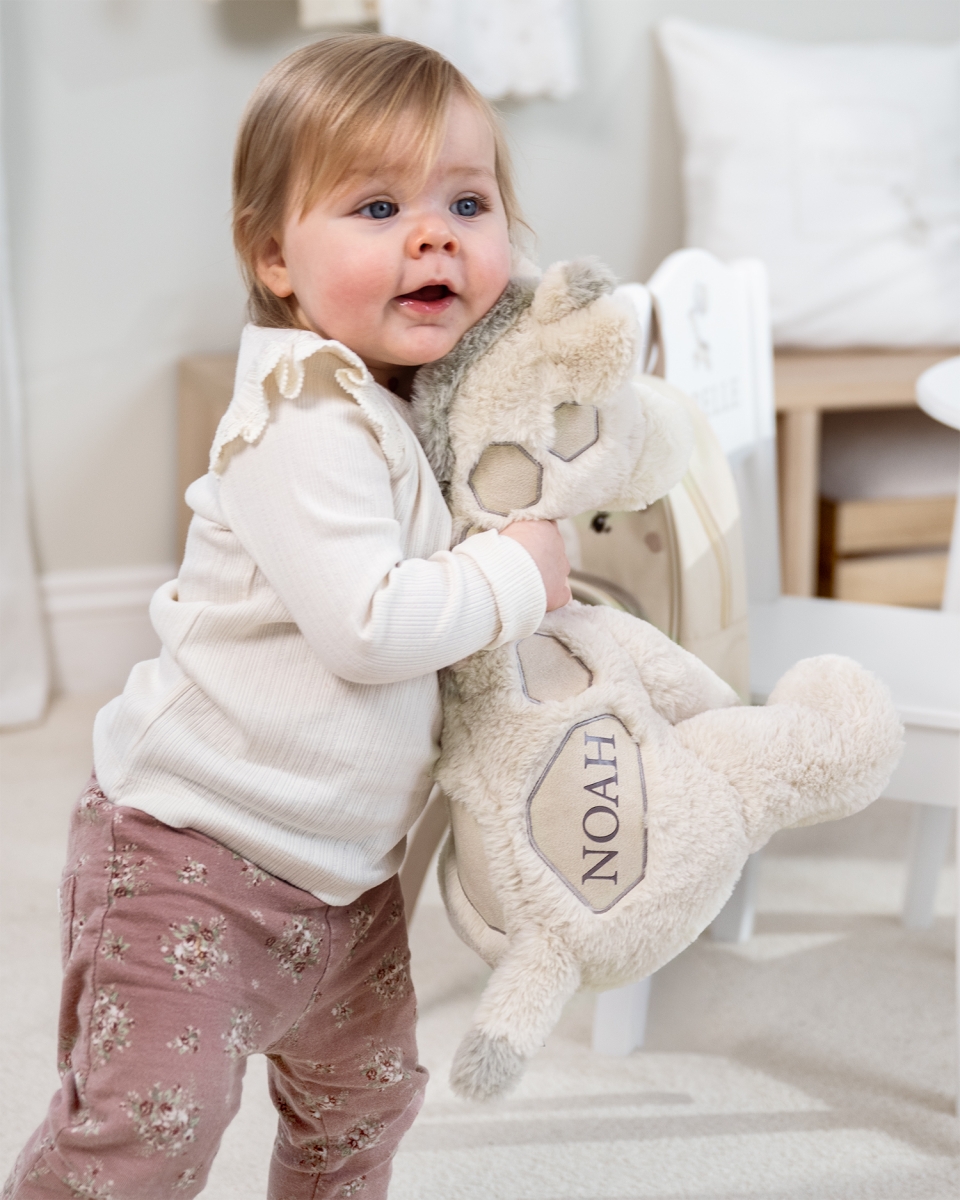 Tämä kierrätysmateriaalista valmistettu pehmoeläin on harkittu valinta – sekä lapsen että planeetan kannalta. Pehmolelun sileä pinta ja pehmeät yksityiskohdat luovat halattavaa turvaa, ja tuotteen kestävä valmistustapa tekee siitä lahjan, jonka antamisesta voit olla ylpeä.